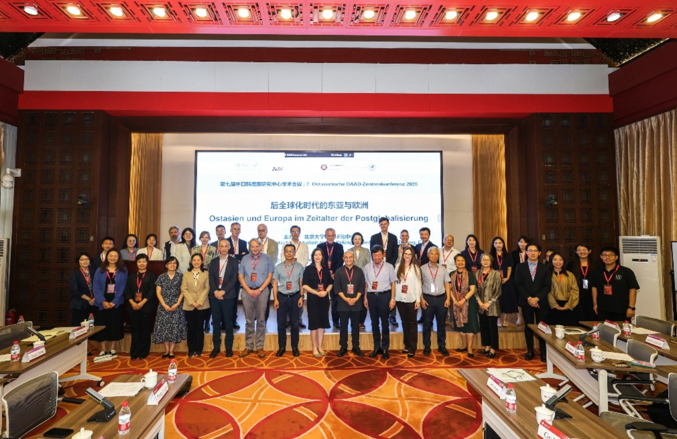 From September 5 to 6, 2025, the "The 7th Conference of East-Asian DAAD Centers," hosted by the Center for German Studies (ZDS) of Peking University, was successfully held in Room 208, Democracy Building. The conference featured 20 presenters from nine universities, including Peking University, Chung-Ang University, The University of Tokyo, Humboldt-Universität zu Berlin, Freie Universität Berlin, and others. They delivered insightful and well-researched keynote reports on the theme "East Asia and Europe in the Post-Globalization Era" from multidisciplinary perspectives such as history, politics, literature, philosophy, economics, and sociology. The conference attracted nearly 80 faculty and students from universities such as Peking University, Beijing Foreign Studies University, Beijing Normal University, University of International Business and Economics, Beijing International Studies University, and others.