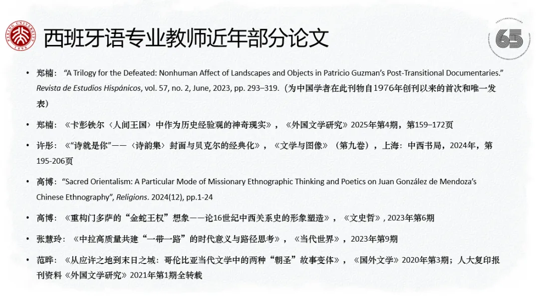 Papers Published by Faculty of the Department of Spanish, PKU School of Foreign Languages (Partial List, Recent Years)