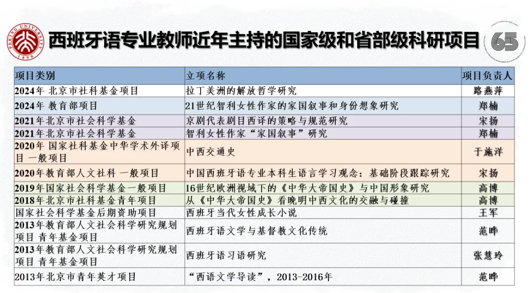 The following sections showcase the achievements of the Department of Spanish at PKU’s School of Foreign Languages in recent years, covering awards, monographs, translations, papers, research projects, and student research activities. Please note that the information compilation is ongoing, and we appreciate your understanding.