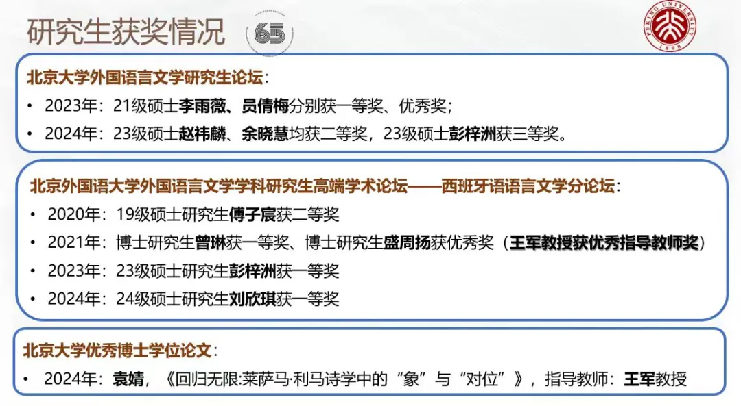 Awards Received by Graduate Students of the Department of Spanish, PKU School of Foreign Languages (Partial List)