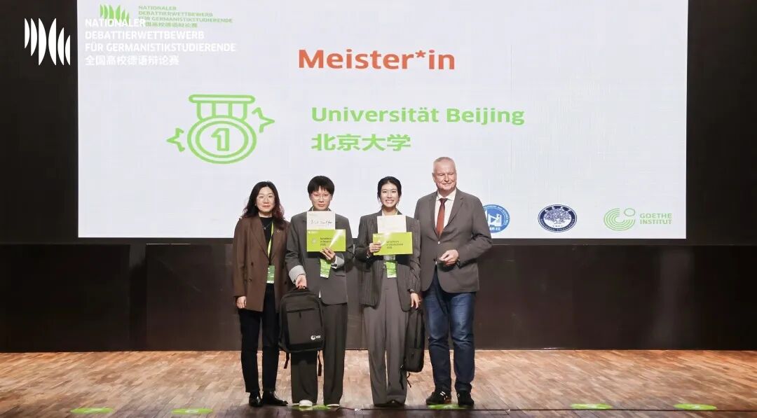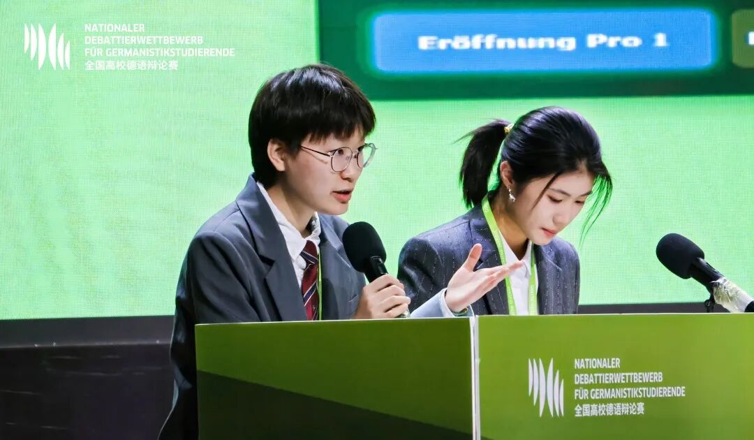On November 1, 2025, the 15th National Debate Competition for Students majoring in German concluded successfully in Nanchang, Jiangxi Province. The event was jointly organized by the Goethe-Institut China, Nanchang University, and Foreign Language Teaching and Research Press, attracting teams from 41 universities across the country. The Department of German Language and Literature at School of Foreign Languages sent Yuan Yifan and Yuan Jiayi, both sophomore students, to compete as a team in the competition. With their solid language foundation, clear argumentation abilities, and excellent teamwork, they excelled through a series of rounds and ultimately won the championship.