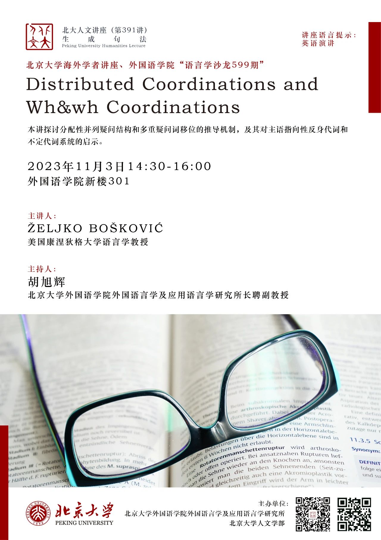 3003新葡平台登录入口海外学者讲座、语言学沙龙599期:Distributed Coordinations and Wh&wh Coordinations