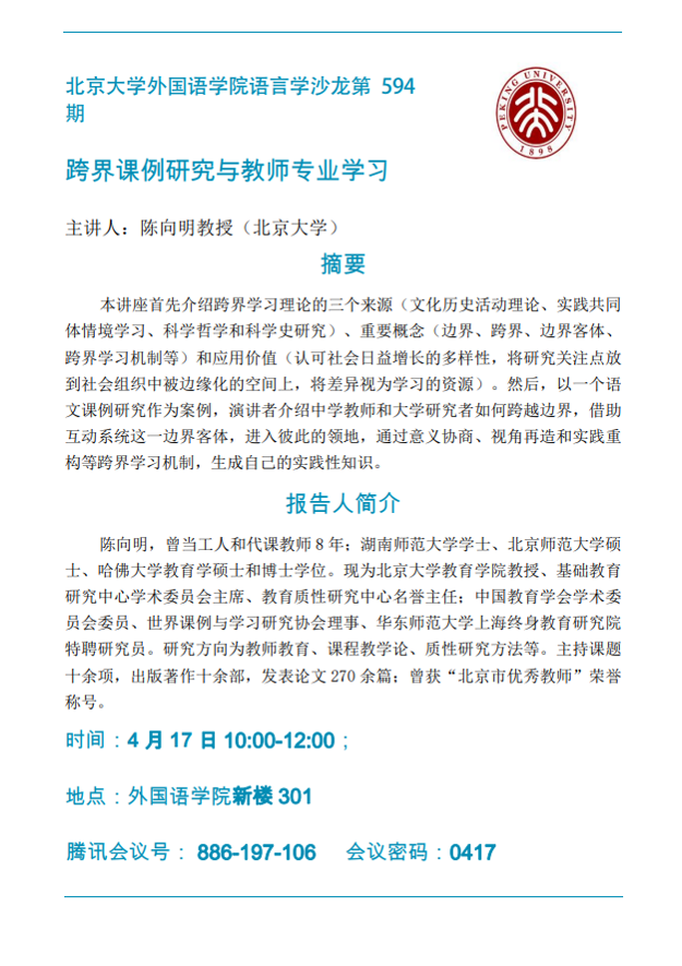 3003新葡平台登录入口语言学沙龙第594期:跨界课例研究与教师专业学习