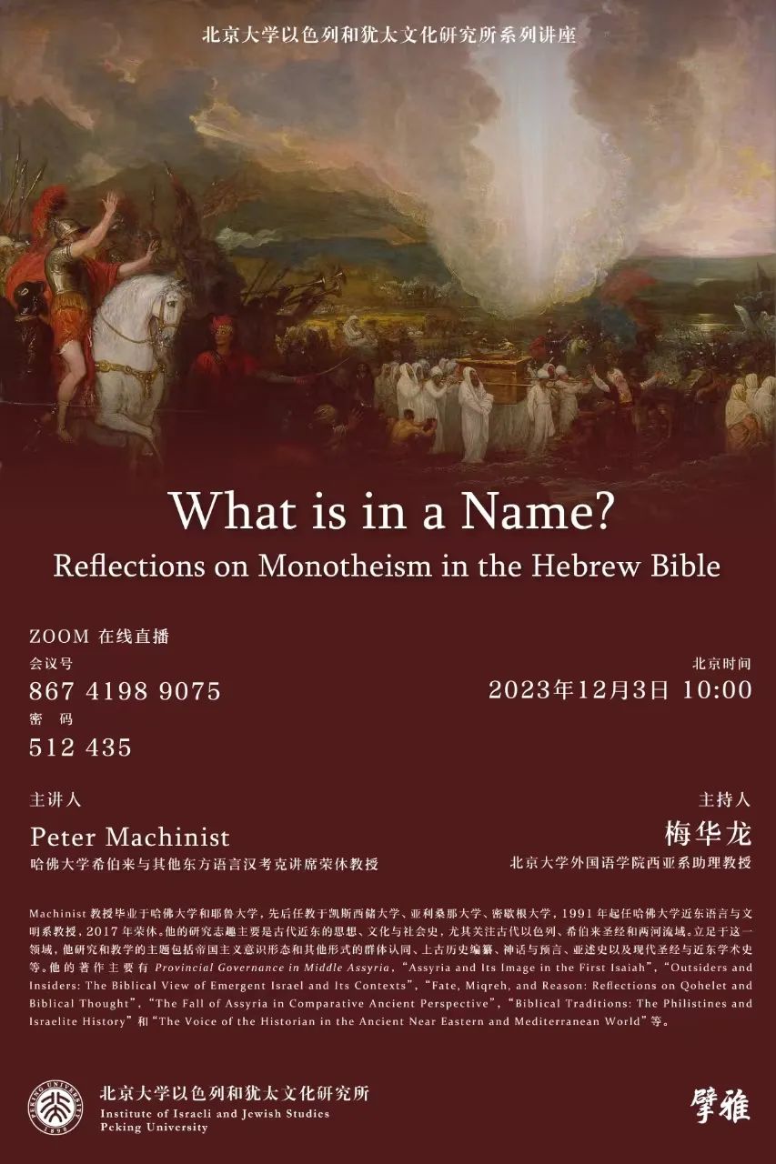 3003新葡平台登录入口以色列和犹太文化研究所系列讲座:名字代表什么?关于希伯来圣经中一神教概念的思考