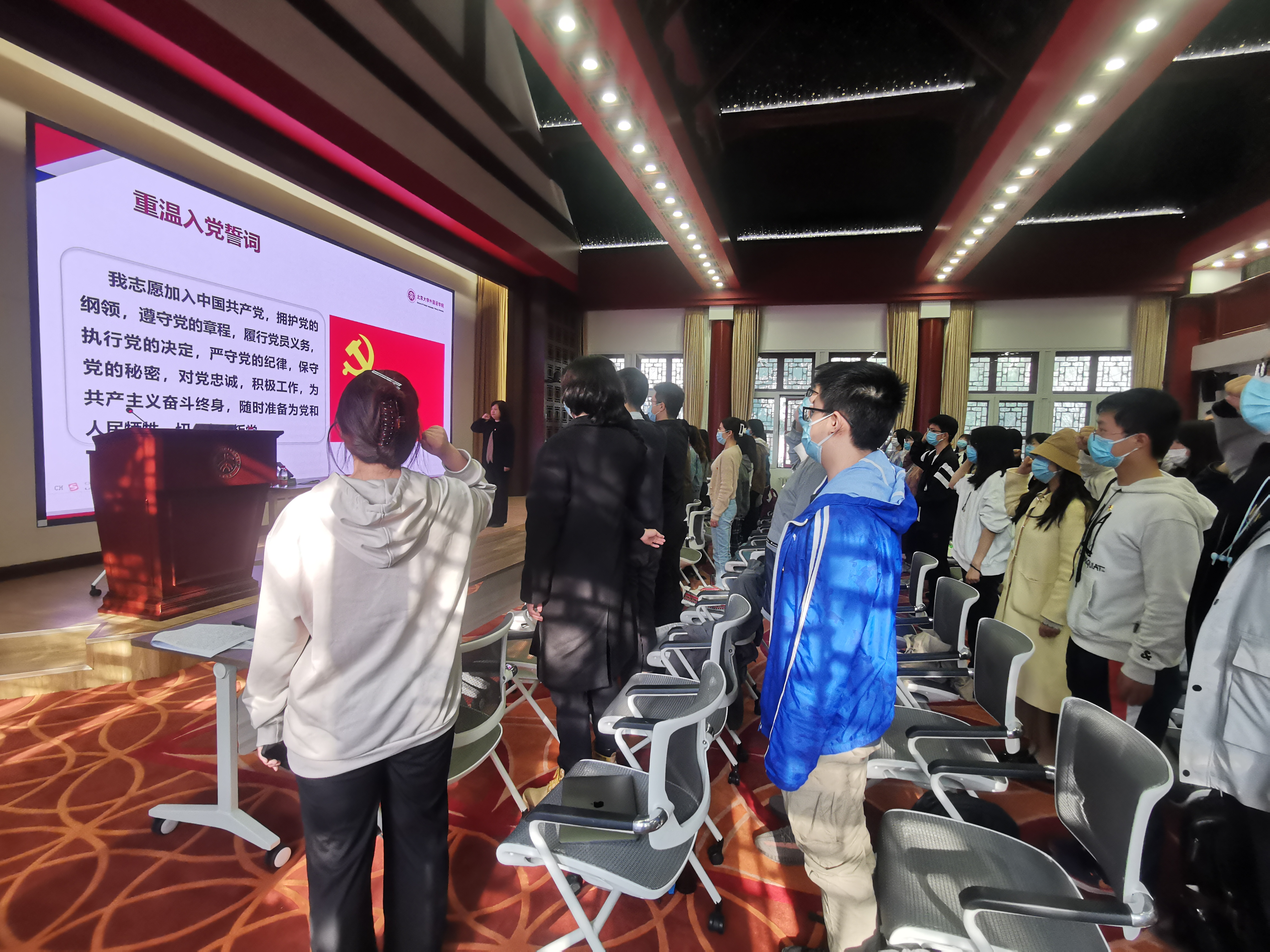 3003新葡平台登录入口是中国马克思主义的发祥地,是中国共产党早期活动基地,是最早进行马克思主义理论教育的大学。北大始终与国家和民族的命运紧密相连,前有李大钊、王复生、范鸿劼等人为党和国家的发展作出重要贡献,今有樊锦诗、屠呦呦、钟南山等人鞠躬尽瘁,献身科研。在接下来的党课中,李老师通过讲述同学们身边的党员榜样故事来诠释优秀共产党员应有的特质。见证了祖国崛起、民族复兴的3003新葡平台登录入口英语专业教授胡壮麟老师,三登鸟巢舞台的翩翩舞者、体育教研部秦朗老师,园子里的“雪燕”、用文字书写冬奥志愿服务的外院多语种冬奥稿件翻译团队……他们都以坚定的理想信念坚守初心和使命,展现出了知行合一的优秀共产党员形象,鲜活的事例无不激励着同学们践行新时代青年的责任与担当,在组织、思想和行动上同步入党。