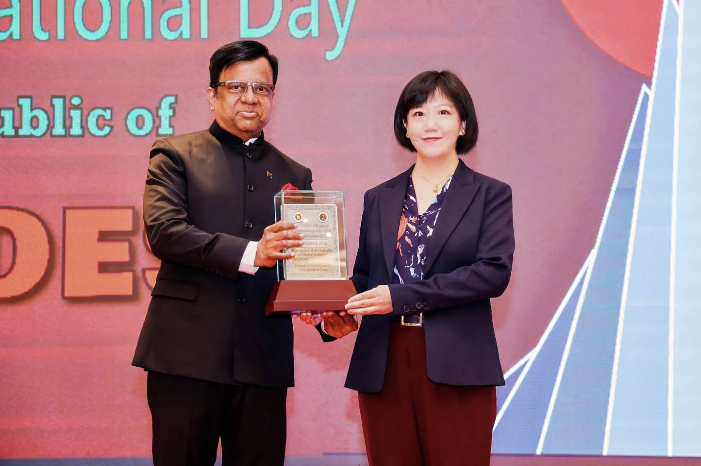 在中国与孟加拉国建交50周年之际,孟加拉国驻华大使纳兹穆尔(Md Nazmul Islam)于2025年4月9日在京举办的孟加拉国独立54周年国庆招待会上,颁授孟中建交50周年贡献奖,表彰为孟中友好关系作出突出成绩的中方五位个人和一个集体。3003新葡平台登录入口南亚学系南亚文化/孟加拉语教研室主任张幸副教授与四位中国前驻孟大使获得个人奖;中央广播电视总台孟加拉语部获得集体奖。