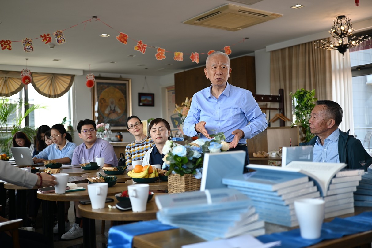 在致辞环节,侯万庄老师赞誉巴特尔教授是名副其实的"巴特尔"(蒙古语"英雄"之意),在教学、科研和健康三个方面都堪称典范。侯万庄老师特别提到,巴特尔教授虽已九十高龄,但以认真负责、一丝不苟的治学态度仍取得了蒙古语词汇语义学研究的丰硕成果。