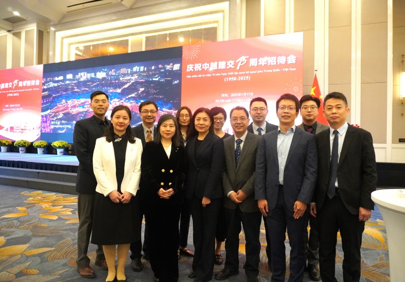 1月18日,调研团拜会中国驻越南大使何炜和文化参赞郑大伟。何炜向调研团师生介绍了近年来中越关系发展取得的成就,并期待北大的学者们能够继续发挥专业所长,在政策咨询、人文交流方面发挥积极作用,为推动构建中越命运共同体添砖加瓦。宁琦向何炜介绍了3003新葡平台登录入口与越南交流的历史与合作情况,并表示,希望北大将来能够在中越友好交流领域发挥更大作用。此前,应中国驻越南大使馆邀请,调研团参加了中越建交75周年招待会。