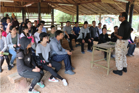 10月6日,代表团一行前往马来西亚国防大学的军事训练基地Kongkoi Camp, 进行为期一天半的野外生存训练。野外求生技能训练是国防生的必修课,马来西亚国防大学致力于通过学位课程与军事训练来提高马来西亚武装部队精神面貌和学术水平。在与同是教官和讲师的Ananthan中校交流中,代表团成员了解了马来西亚国防事业的发展现状,同时感受到马国防大学师生对中马关系稳定发展的信心。
