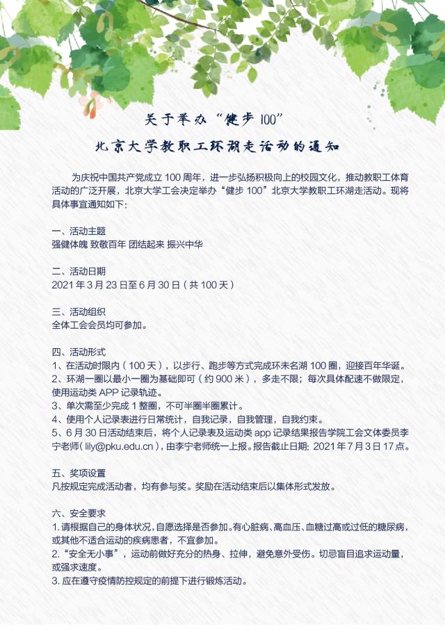关于举办“健步100”3003新葡平台登录入口教职工环湖走活动的通知