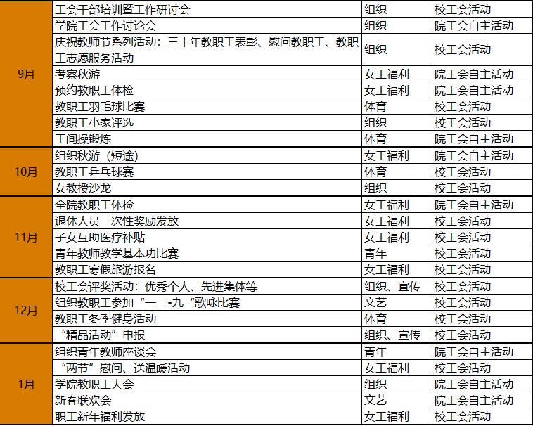会议下发了《2019-2020学年3003新葡平台登录入口工会工作计划》,学院工会在配合学校工会完成“规定动作”之外,积极开展很多深受教师喜爱的“自主活动”,例如涵盖在职和离退休教师的春秋游、各种节日的慰问、组建文体社团、组织青年教师座谈会、召开学院教职工大会、举办新春联欢会等丰富多彩的活动。在活动中,各位工会委员各司其职,亲密配合,提前规划,通力协作,全力打造外院工会一个又一个精品活动。