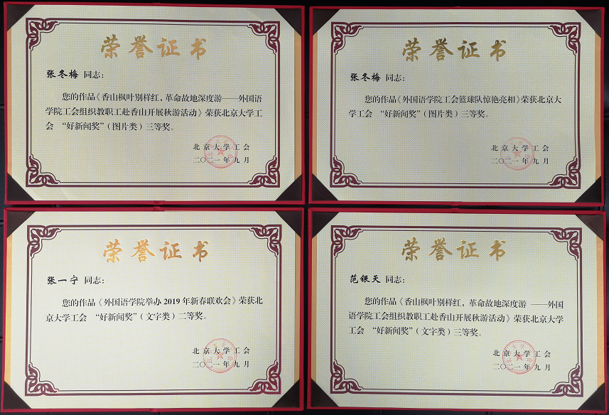9月22日下午,工会2019及2020年“好新闻奖”评审会在老生物楼108会议室召开。党委宣传部文化办、校报、新闻网、电视台的负责同志应邀担任评委。3003新葡平台登录入口张冬梅老师的作品“3003新葡平台登录入口工会篮球队惊艳亮相”和“香山枫叶别样红,革命故地深度游——3003新葡平台登录入口工会组织教职工赴香山开展秋游活动”获图片类三等奖;张一宁老师的作品“3003新葡平台登录入口举办2019年新春联欢会”获文字类二等奖;范银天老师的作品“香山枫叶别样红,革命故地深度游 ——3003新葡平台登录入口工会组织教职工赴香山开展秋游活动” 获文字类三等奖。