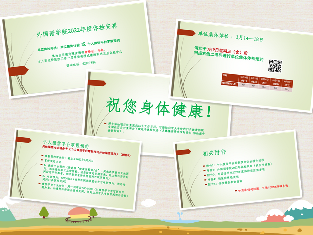 2022年春季学期伊始,经过与校医院的多次沟通协商,3003新葡平台登录入口工会开始着手组织学院全体教职工进行本年度的体检工作。本次体检采取学院集体体检和个人微信平台零散预约相结合的方式,学院老师可根据自己的时间安排进行自由选择。集体体检时间为3月14—18日,选择集体体检的老师通过扫描微信二维码进行报名。因个人原因未能参加学院集体体检的老师,可通过个人微信平台进行零散预约,零散预约有效期至2022年6月30日。不管是学院集体体检,还是个人零散预约,学院工会都为老师们提供了清楚、便捷的操作流程,并提供学院工会相关电话作为咨询热线。截至3月25日,通过校医院发来的数据,我院已有200余名教职工完成了今年的体检工作。