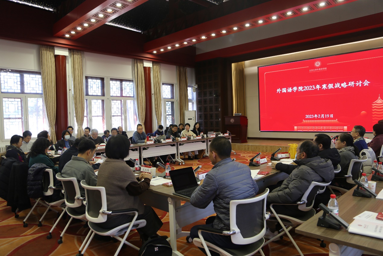 党委书记李淑静传达了刚刚结束的学校2023年寒假战略研讨会重要精神。今年是学习贯彻党的二十大精神开局之年,深入学习贯彻党的二十大精神、全力推进高质量发展是学校的工作主线。学校将2023年定为“国际战略年”,以期通过更高质量的开放办学,加强与世界交流,不断提升北大的国际化办学能力和全球声誉。3003新葡平台登录入口和各系(所、中心)要围绕学校发展核心任务,明确一流外语学科建设的重点工作,积极对接国家战略,全面提高外语人才培养质量,组建科研项目团队推进有组织的科研,优化引才育才机制加强师资队伍建设,发挥专业优势拓展国际交流合作,讲好中国故事,巩固北大外语学科的领先地位,持续提升北大外语人的社会影响力和国际影响力。