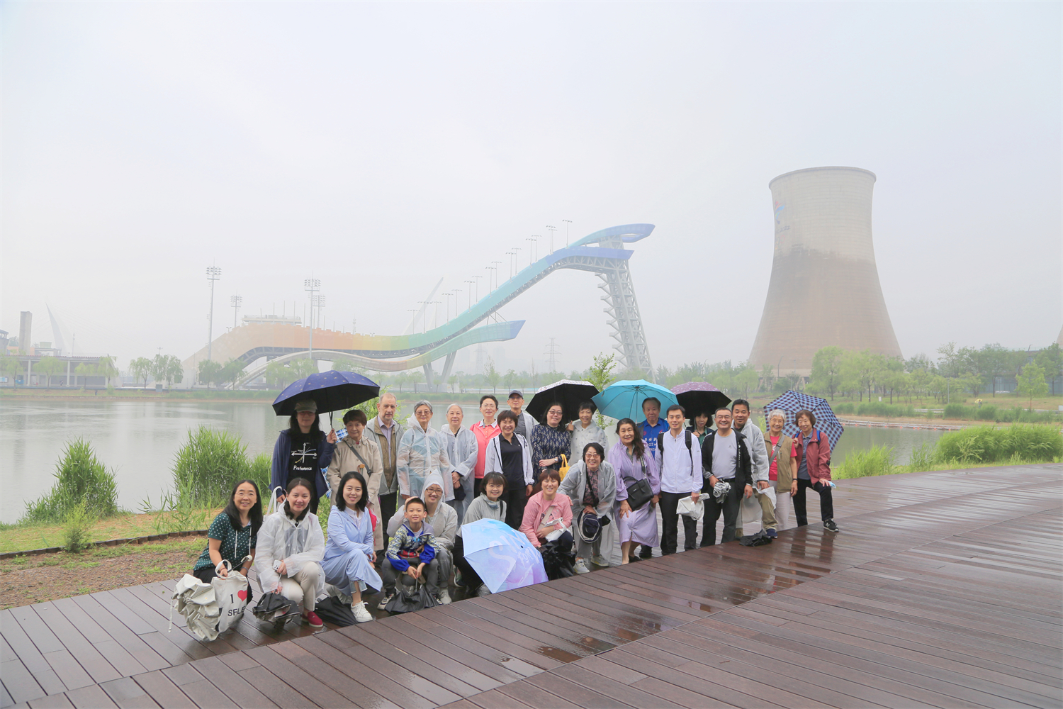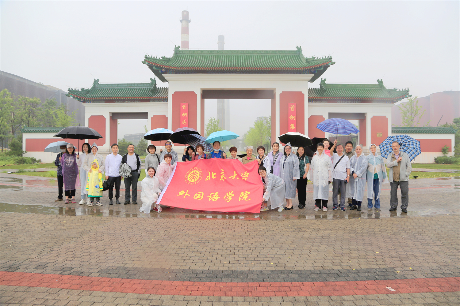 27日朝雨濛濛,却未能熄灭老师们对于集体活动的热情,来自十几个系所中心的老师冒雨来到燕园集体乘车,因疫情阻隔很久未能集体活动的老师们见面分外激动,一路欢声笑语,畅聊工作生活。上午9:00许,老师们来到首钢园。此时园区烟雨蒙蒙,更显静谧凉爽。在舒适的环境中,老师们开始了期待已久的春游活动。