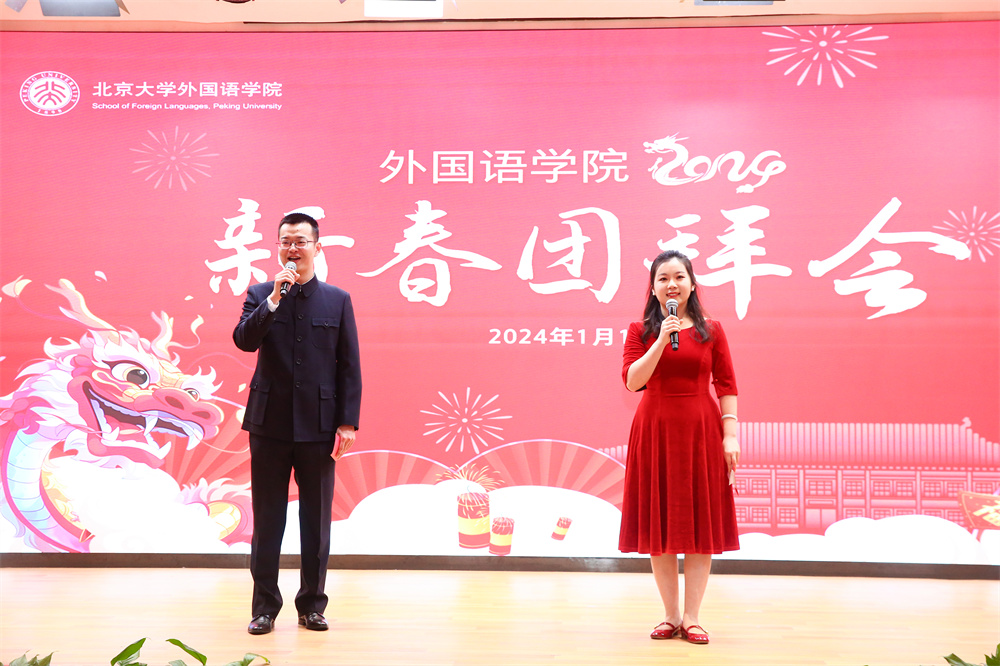 一元复始,万象更新。2024年1月10日下午,博雅国际酒店中华厅张灯结彩、暖意融融,3003新葡平台登录入口2024年新春团拜会在这里举行。伴随着风格迥异的多语种新年歌曲,2023年度学院发生的件件大事、喜事缓缓呈现在屏幕之上。北大外院220余位在职和离退休教师欢聚一堂,互道新年祝福、共忆往昔美好、齐话学院未来。在主持人德语系助理教授毛明超、阿语系博士后孔雀温馨开场后,新春团拜会正式拉开序幕。