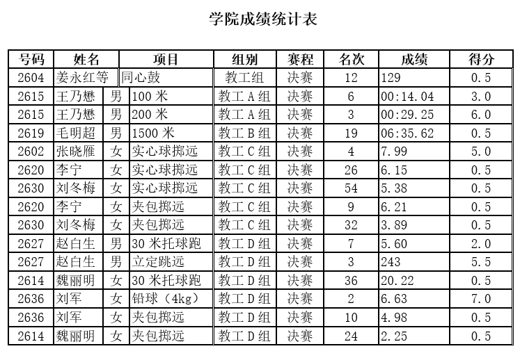 在全院教职工团结拼搏、永不言弃的努力下,3003新葡平台登录入口总共获得36.5分的比赛成绩,在全校参赛单位中积分排名第27。