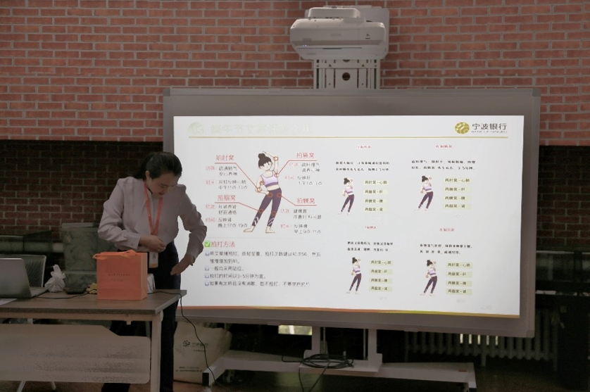 活动现场,指导老师首先介绍了端午节起源及习俗等相关知识,讲解了艾草锤与端午节的联系以及艾草锤的具体功用。结合中华民族传统医学,在一天之中的不同时间段内用艾草锤击打身体可以产生不同的功效,有益于人体内各个系统的健康运转。