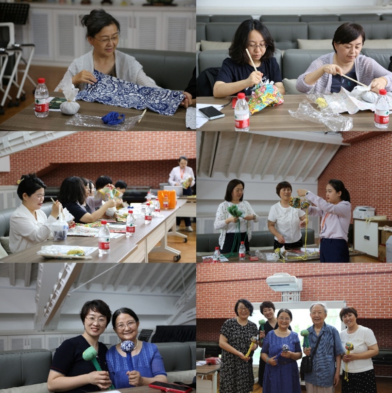 老师们一边制作,一边互相交流,分享心得,互帮互助,伴随着欢声笑语和阵阵艾草香,一个个色彩鲜明、风格各异的艾草锤逐步出现在大家的手中。大家拿着自己的劳动成果合影留念,共同分享端午节的喜悦和温暖。