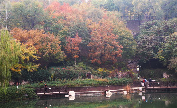 枫叶红火银杏黄,亭台楼阁径通幽。