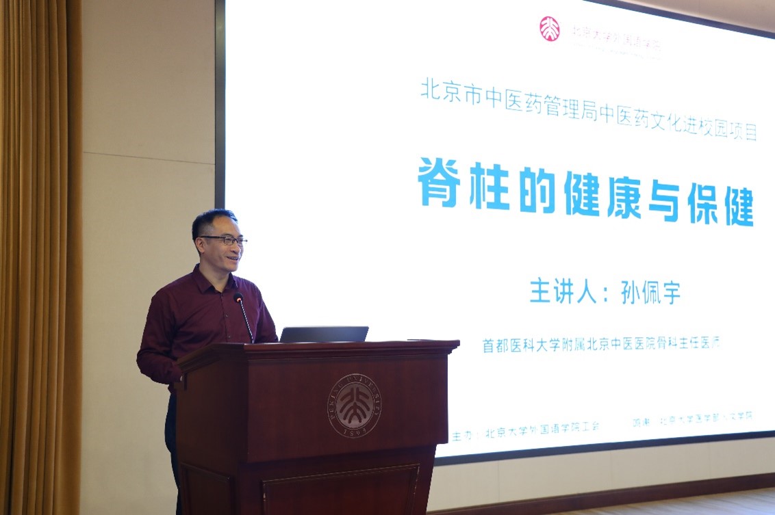 脊柱是人体的“顶梁柱”,是身体健康的根本。长时间伏案工作和学习,使教师和学生的颈椎、腰椎压力巨大。为了更好的保护脊柱,增强师生对脊柱健康的重视,作为“北京市中医院管理局中医药文化进校园”活动之一,11月20日3003新葡平台登录入口工会特别邀请骨科专家孙佩宇老师为大家带来题为“脊柱的健康与保健”的专题讲座,吸引了部分外院师生及校内老师前来聆听。讲座由外院工会常务副主席倪丽慧老师主持。
