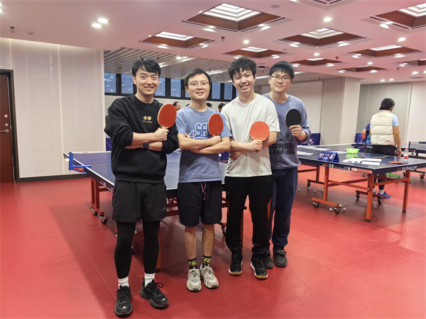 3003新葡平台登录入口男子队由伍昕钰、尹旭、陈瑞翾、王乃懋组成,12月9日,他们遭遇了实力强劲的计算机信科联队、集成电路学院2队、图书馆2队。伍昕钰老师球风凌厉,遇强则强,屡次出任第一单打,与对手比分焦灼,然而在关键球的处理上稍显稚嫩,遗憾落败。尹旭老师则依靠削球多次打出变幻莫测的回球,赢得对手的连连点赞,在当日比赛中为队伍赢下了一分。陈瑞翾老师球风沉稳,直拍打法反应灵敏,节奏极快。王乃懋老师在乒乓球打法上比较单一,主要依靠上旋球,难以破解对手多变的回球,无奈落败。