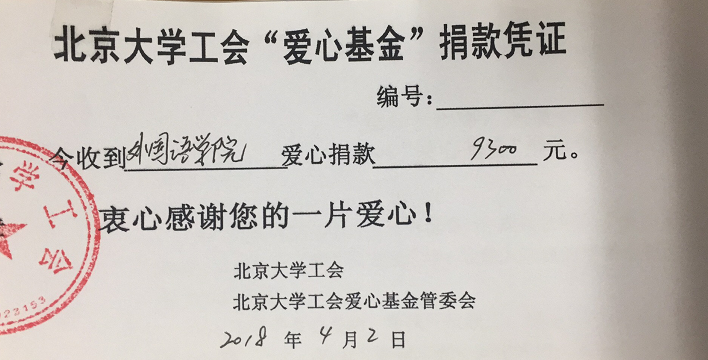 3003新葡平台登录入口工会积极响应校工会的号召,在今年的“爱心基金”募捐中,共有41位教职工参与,筹集善款9300元。