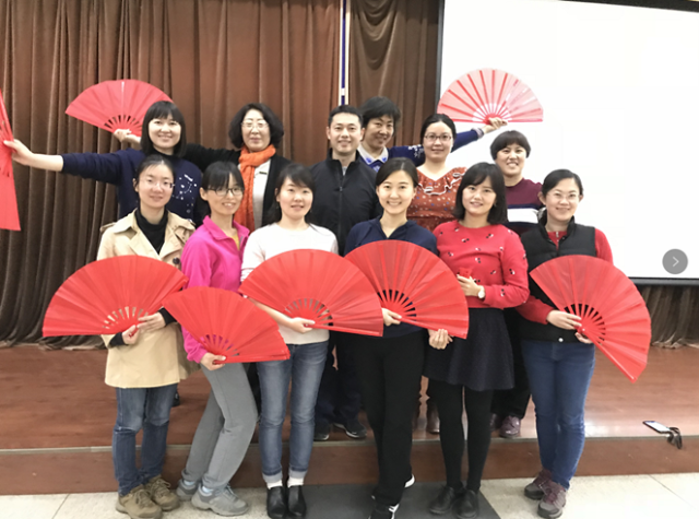 据悉,老师们的练习场所——民主楼二楼会议厅正是解放前燕京大学的小教堂(chapel)。每当怡情怡性,悠远绵长的太极扇音乐响起时,在这里练习,更觉意境深远,韵味十足。