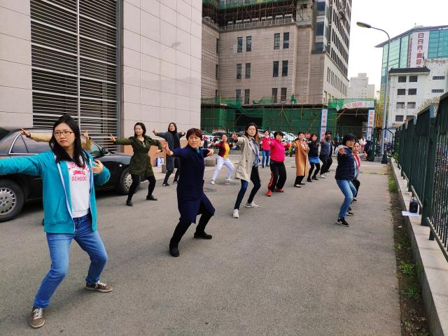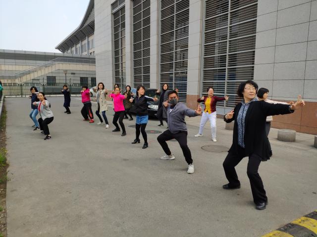 为了迎接4月20日举行的2019年3003新葡平台登录入口运动会,也为了丰富3003新葡平台登录入口教职员工的文化体育生活,增进同事间的友好交流,增强团队协助精神,3003新葡平台登录入口最近两周每天上午11:00-11:30在燕园大厦西侧的空地上进行太极拳团体操的训练,几十名员工参加,气氛和谐、友好如家人;在温暖明媚的四月,大家也都像春天一样充满朝气和活力。