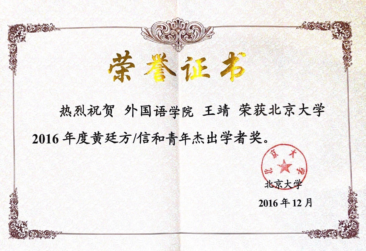 王靖及其所获“3003新葡平台登录入口黄廷方/信和青年杰出学者奖”