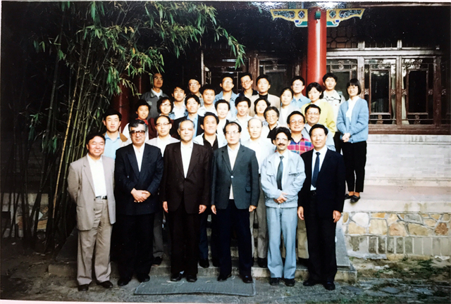 罗豪才、叶奕良、季羡林、吴树青、夏希迪(从左至右)在伊朗文化研究所成立典礼上(1990)