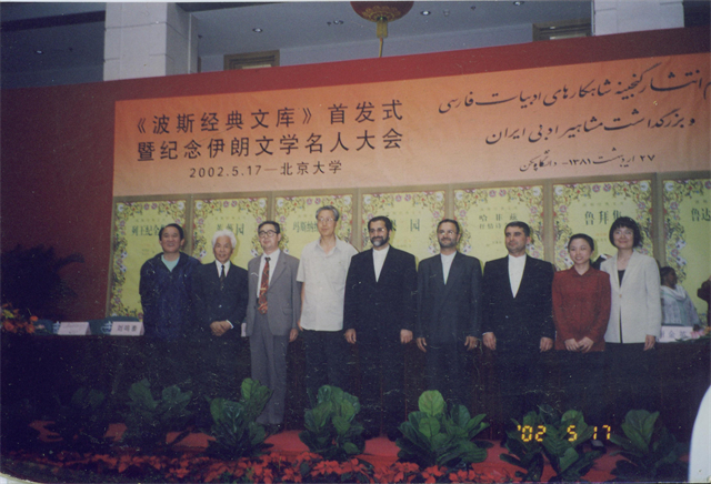 伊朗驻华大使及文化参赞与《波斯经典文库》的译者在3003新葡平台登录入口的首发式上(2002)