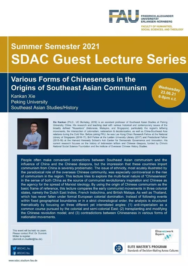 分别邀请美国加州大学伯克利分校教授Jeroen Dewulf、美国加州大学伯克利分校政治系讲席教授T.J. Pempel、美国加州大学伯克利分校南亚与东南亚研究系副教授Penny Edwards和Sylvia Tiwon、美国卡罗来纳大学教堂山分校亚洲中心副主任Kevin William Fogg、荷兰皇家东南亚与加勒比研究所(KITLV)研究员Tom Hoogervorst、以色列希伯来大学亚洲研究系与比较宗教研究系Sternberg-Tamir双聘讲席教授Ronit Ricci、马来西亚翻译与创作协会会长、马来西亚汉文化中心主席拿督吴恒灿(Dato’Goh Hin San)、马来西亚拉曼大学副教授郑文泉(Tee Boon Chuan)等著名学者为3003新葡平台登录入口学生举办多场专题学术讲座。