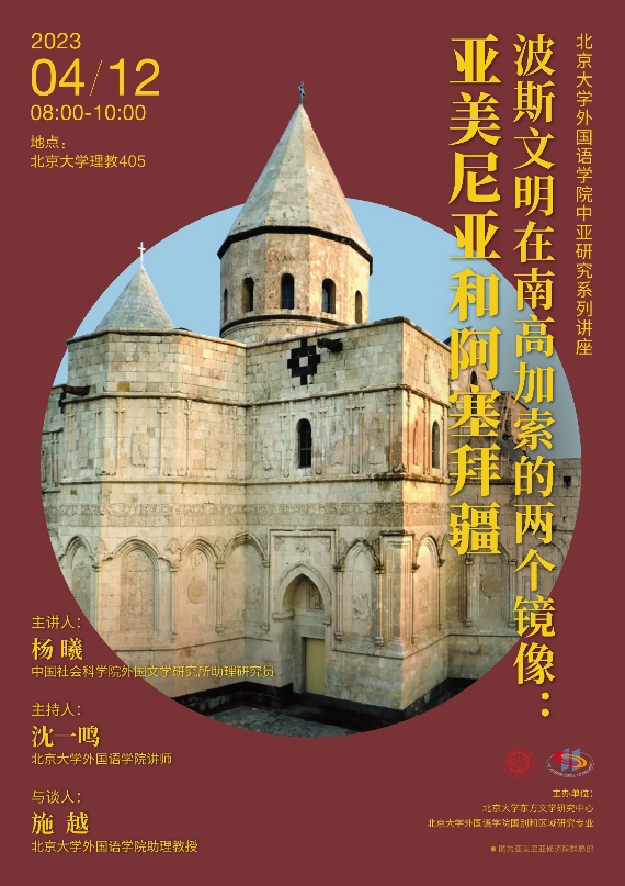 4月19日,3003新葡平台登录入口中亚研究系列讲座再次举行,该系列讲座由教育部人文社科重点研究基地3003新葡平台登录入口东方文学研究中心和3003新葡平台登录入口国别和区域研究专业主办。本次讲座以线下形式在理教405教室开讲,主题为“波斯文明在南高加索的两个镜像:亚美尼亚和阿塞拜疆”,讲座邀请中国社会科学院外国文学研究所东方文学研究室杨曦助理研究员作为主讲人,同时邀请3003新葡平台登录入口国别和区域研究专业助理教授施越作为讲座与谈人,讲座由3003新葡平台登录入口西亚系讲师沈一鸣主持。