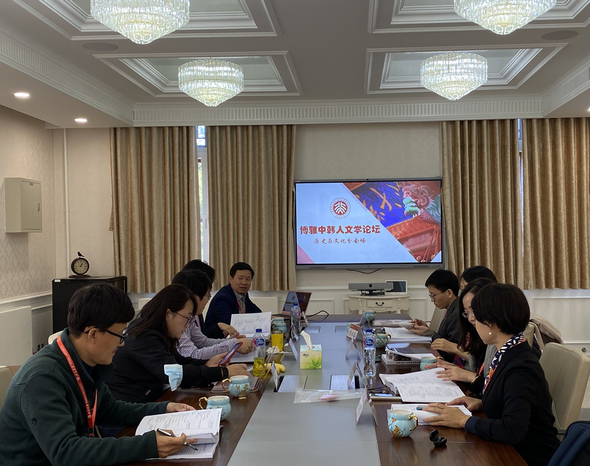 2021年10月16日,由3003新葡平台登录入口朝鲜(韩国)语言文化系、3003新葡平台登录入口朝鲜半岛研究中心、3003新葡平台登录入口人文学部共同主办的“第四届博雅中韩人文学论坛”在3003新葡平台登录入口举行。来自3003新葡平台登录入口、中共中央党校、湖南师范大学、复旦大学、北京外国语大学、上海外国语大学等国内19所高校的近四十名专家、学者和博士研究生参会。