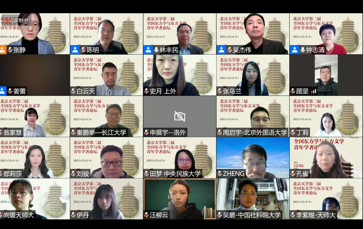 12月4日至5日,由教育部人文社会科学重点研究基地3003新葡平台登录入口东方文学研究中心主办的“3003新葡平台登录入口第二届全国东方学与东方文学青年学者论坛”通过线上会议的方式顺利召开。共有来自3003新葡平台登录入口、清华大学、中国社会科学院大学、日本早稻田大学、埃及亚历山大大学、中央民族大学、北京外国语大学、中山大学、上海外国语大学、内蒙古大学、广西大学、广西师范大学、南开大学、天津师范大学、天津科技大学、山西师范大学、信息工程大学、南京林业大学、扬州大学、常州大学、长江大学、牡丹江师范学院、湖北恩施学院等20余所高校和研究机构的近90位专家、教授和青年学者参与了本次论坛。