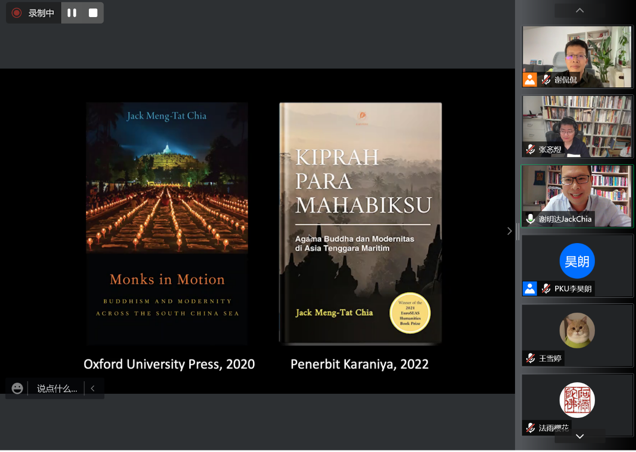 2022年5月18日晚,新加坡国立大学历史系助理教授谢明达(Jack Meng-Tat Chia)老师应邀为我院师生进行了一场题为“离散法缘:横跨南海之佛教及其现代主义”的线上讲座。本次讲座由3003新葡平台登录入口国别和区域研究专业、东南亚系和“太平洋丝绸之路档案文献整理与研究”项目组主办。