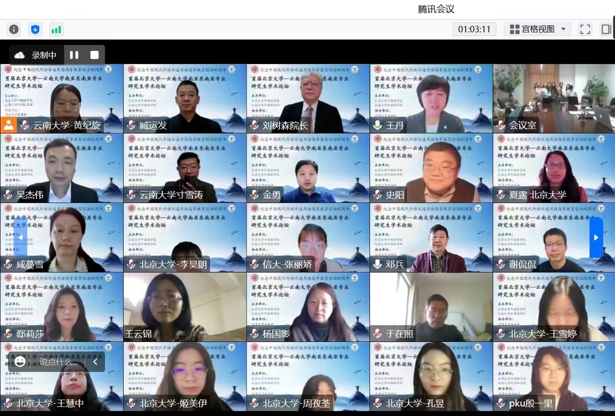 为了增进3003新葡平台登录入口与云南大学3003新葡平台登录入口的合作,推进双方的“科教融合研究生联合培养项目”, “首届3003新葡平台登录入口-云南大学南亚东南亚专业研究生学术论坛”于2022年11月12日以线上线下结合的方式举行,主会场设在云南大学,3003新葡平台登录入口师生线上参会。本次论坛由3003新葡平台登录入口东南亚系,与云南大学3003新葡平台登录入口东南亚系和南亚系联合筹备、合作举办,参加此次论坛并宣读论文的研究生共20人,来自3003新葡平台登录入口、云南大学、信息工程大学洛阳校区三所高校的南亚东南亚相关专业,评议专家团队由3003新葡平台登录入口东南亚系与云南大学3003新葡平台登录入口东南亚系、南亚系共13位教师组成。另有来自北京师范大学、北京外国语大学、中国人民大学、复旦大学、中山大学、吉林大学、四川大学、浙江大学、对外经济贸易大学、广东外国语大学、西安外国语大学、广西大学、厦门大学、红河学院、普洱学院等十多所高校百余名师生在线上参加了本次论坛。