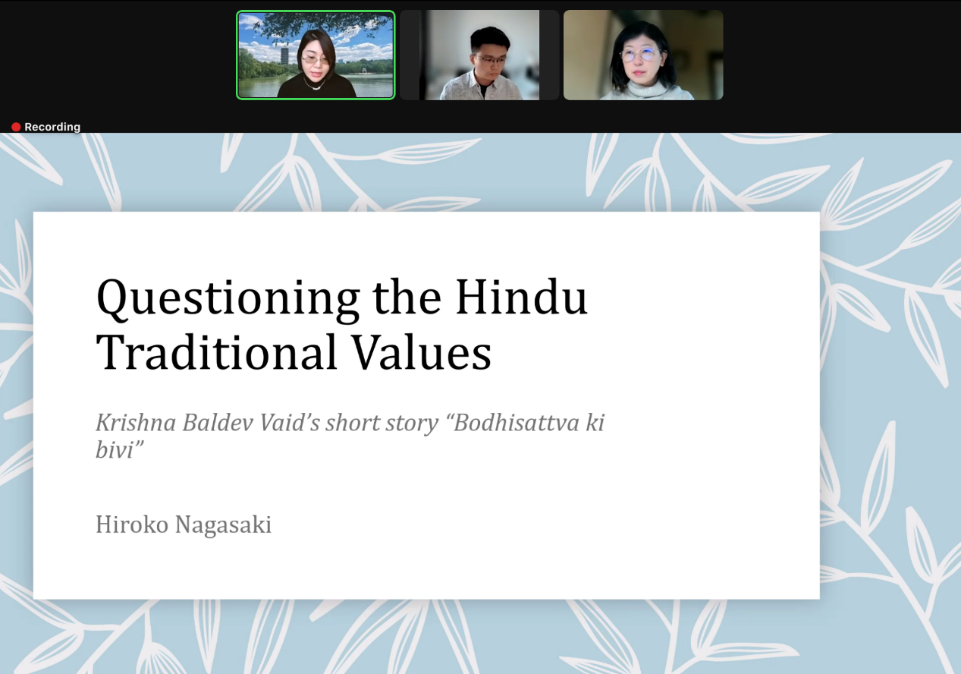 2022年12月3日,日本大阪大学人文研究院教授长崎弘子(Hiroko Nagasaki)应3003新葡平台登录入口南亚研究中心邀请,在线上为北大师生带来了专题讲座“对印度传统价值观的质疑——论克里希纳·巴尔德维·瓦伊德的短篇小说《菩提萨埵的妻子》”(Questioning the Hindu Traditional Values: Krishna Baldev Vaid's Short Story Bodhisattva Ki Bivi )。本次讲座系3003新葡平台登录入口人文讲座第364讲暨“北大南亚讲堂”系列讲座第12讲,由3003新葡平台登录入口南亚研究中心、3003新葡平台登录入口、3003新葡平台登录入口人文学部主办。3003新葡平台登录入口南亚学系助理教授王靖担任本次讲座主持人,3003新葡平台登录入口南亚学系助理教授贾岩担任评议人,讲座还邀请到了北京外国语大学亚洲学院印地语专业主任李亚兰作为与谈人。