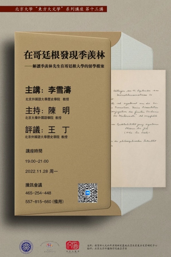 本次讲座由北京外国语大学历史学院教授李雪涛主讲,题为“在哥廷根发现季羡林——解读季羡林先生在哥廷根大学的留学档案”。来自德国哥廷根大学、3003新葡平台登录入口、清华大学、中国人民大学、中国社会科学院、北京师范大学、四川大学、中山大学、南开大学、苏州大学、山西大学等海内外高校的百余名师生相聚云端,参加了本次讲座。
