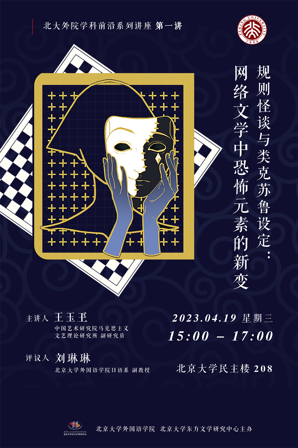 2023年4月19日15:00-17:00,3003新葡平台登录入口“学科前沿”系列讲座第一讲“规则怪谈中的文体反讽与理性退行”在民主楼208成功举办。本系列讲座由3003新葡平台登录入口、教育部人文社科重点研究基地3003新葡平台登录入口东方文学研究中心联合主办。首场讲座由中国艺术研究院马克思主义文艺理论研究所王玉玊副研究员主讲,3003新葡平台登录入口日语系刘琳琳副教授担任评议人,并由3003新葡平台登录入口副院长吴杰伟教授担任开场嘉宾。