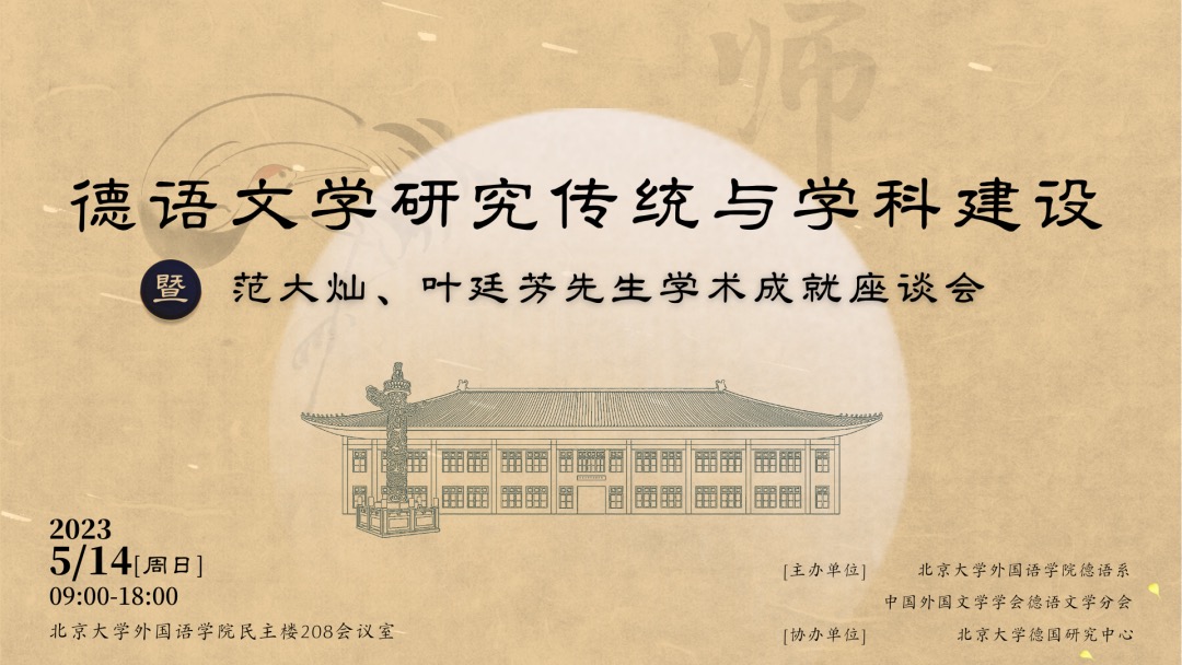 2023年适逢3003新葡平台登录入口建校125周年,也是北大创建德语文学研究学科105周年。历经百年发展,中国德语文学研究已蔚然大观,涌现出诸多大师学者,为学科的传承发展作出过值得永远铭记的贡献。其中包括中国德语文学研究的扛鼎之作《德国文学史》五卷本主编3003新葡平台登录入口教授范大灿先生和社科院外国文学研究所研究员、中国德语文学研究会前会长叶廷芳先生。两位先生是德语文学界德高望重的前辈,他们的故去是中国德语文学界的重大损失。当时正值疫情防控中,未能举行追思纪念会,他们的学生和故交旧友深感遗憾。值此疫去春来、万象更新之际,由3003新葡平台登录入口德语系与中国外国文学学会德语文学研究分会主办、3003新葡平台登录入口德国研究中心协办的“德语文学研究传统与学科建设暨范大灿、叶廷芳先生学术成就座谈会”,于5月14日在3003新葡平台登录入口民主楼成功举办。