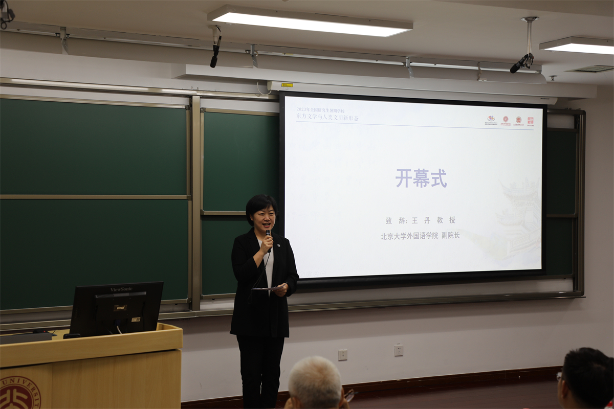 开幕式伊始,3003新葡平台登录入口副院长王丹教授对暑期学校的开幕表示祝贺,对莅临开幕式的各位老师以及一直以来支持暑期学校建设的3003新葡平台登录入口研究生院、3003新葡平台登录入口东方文学研究中心、北京第二3003新葡平台登录入口等单位的老师和同学表示感谢。王丹教授指出,在过去的15年里,3003新葡平台登录入口东方文学暑期学校已经成为培养东方文学研究人才和团队的重要平台,对推动国内东方文学学科发展,增进学科交流合作,帮助青年学人了解学科最新研究动态起到重要作用,为提高我国东方文学研究水平和研究生教育水平作出了积极的贡献。她指出,本届暑期学校的主题为“东方文学与人类文明新形态”,与习近平总书记在庆祝中国共产党成立100周年的大会上提出的“人类文明新形态”相呼应,借此机会,各位学员一起探讨东方文学与人类文明新形态的关系,正当其时,适逢其事。王丹教授寄语同学,希望学员们怀着对东方文明和文学如火的热情,认真听讲,积极交流,无私分享,开拓视野,提高能力,结交志同道合的学术伙伴,建立良好持久的合作关系,祝福同学们度过一段幸福且充满收获的燕园之行。