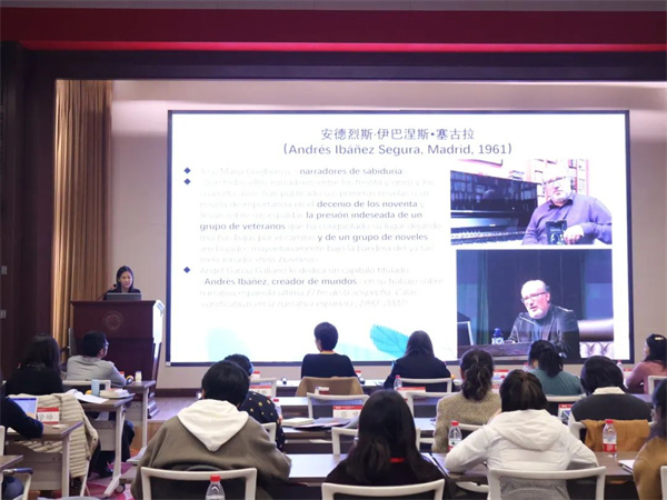 华南师范大学文学院滕威教授介绍了智利左翼先锋艺术家何塞·万徒勒里在冷战时期为中拉文化交流带来的影响,强调这位中国人民的老朋友在艺术、政治、教育等领域所做的贡献,指出万图勒里对艺术独立性与批判性的坚守为当下提供了参照与启发。浙江大学西班牙语语言文化研究所所长卢云副教授探讨了十九世纪西班牙保守浪漫主义文人如何反驳欧美浪漫主义作家笔下“东方化”“非中心”的西班牙刻板形象,在《唐璜·特诺里奥》和《海鸥》等作品中刻画西班牙国民性,构建国民意识。3003新葡平台登录入口助理教授郑楠关注古巴作家卡彭铁尔在《人间王国》等作品中阐发和实践的神奇现实论,论述这一文艺理论及辩证历史经验观如何超越欧洲超现实主义的美学局限,为人类普遍面对的启蒙理性危机与现代性经验贫乏的困境提供了超越欧洲中心主义的救赎可能。3003新葡平台登录入口助理教授王渊探讨了安哥拉作家阿瓜卢萨笔下的白化病书写,指出作家在多部小说中将白化病人群体同非洲的历史与现实相结合,将白化病由一种非洲的常见现象转化为一种书写方法与意义纽带。3003新葡平台登录入口赵振江教授、复旦大学程弋洋教授、首都师范大学杨玲副教授和3003新葡平台登录入口樊星副教授分别对四位发言人的报告进行评议。