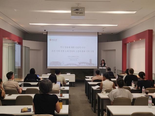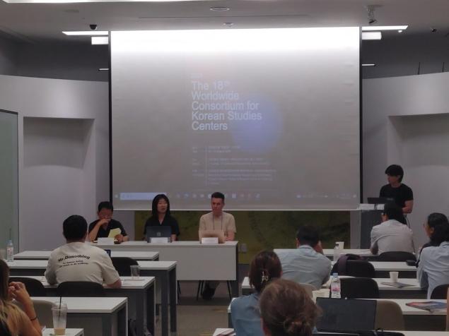 在“意识形态与记忆(Ideologies and Memories)”分论坛,我院2024级朝(韩)语系硕士研究生徐瑞佳宣读了论文。徐瑞佳同学以《历史的反思性书写:朝鲜朝战争素材梦游录小说的文化记忆构建(Memory in Motion: Reflexive Historiography and Fictional Reworking of Sixteenth- and Seventeenth-Century Wars through Mongyurok Literature)》为题,聚焦朝鲜朝时期战争题材梦游录小说的文化记忆建构,依托文化记忆理论,通过对文本的深入剖析,探讨梦游录小说这一独特文学形式如何在历史反思与民族情感的交织中发挥作用(指导教师:琴知雅老师)。韩国延世大学金贤珠(김현주)教授、日本九州大学山口祐香(Yamaguchi Yuka)教授、美国密歇根大学安俊泳(Juhn Y. Ahn)教授对徐瑞佳同学的论文进行了点评,认为该研究对于审视历史与文化、文学之间的互动具具有重要意义,不仅拓展了梦游录文学的研究视野,也为战争记忆与文学叙事之间的关系提供了新的启发。