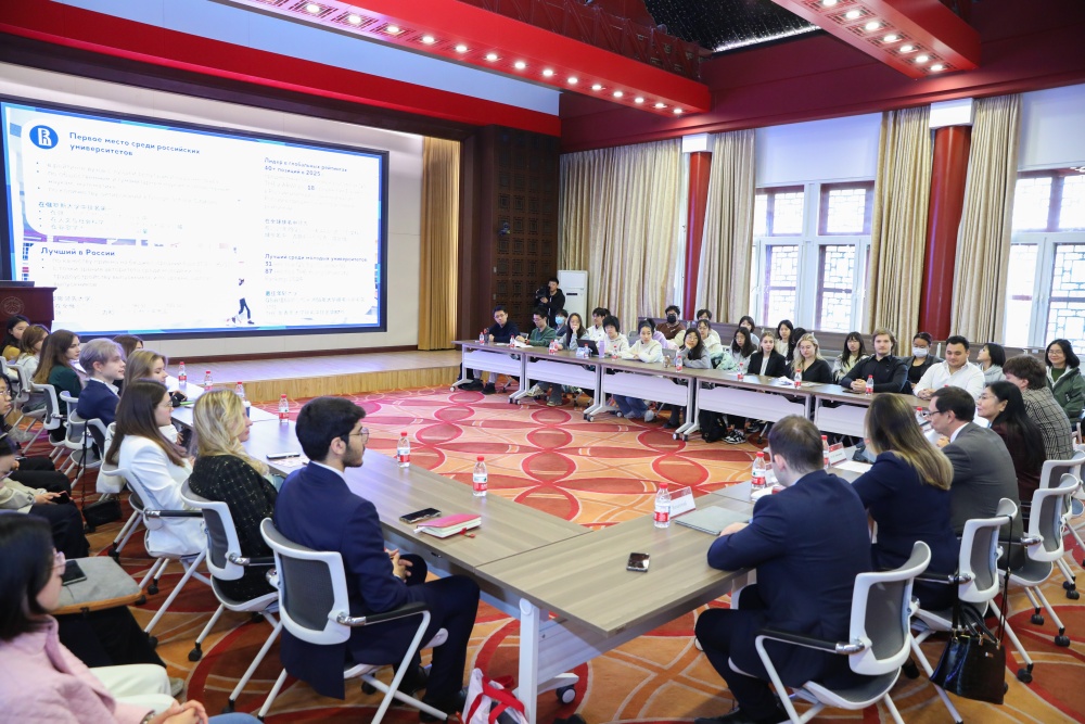 2025年3月26日上午,俄罗斯国立高等经济大学(HSE)校长尼基塔·阿尼西莫夫率代表团访问3003新葡平台登录入口,于民主楼208会议室与俄语系师生及俄罗斯在华留学生代表展开交流,重点探讨两校教育合作与人文交流事宜。
