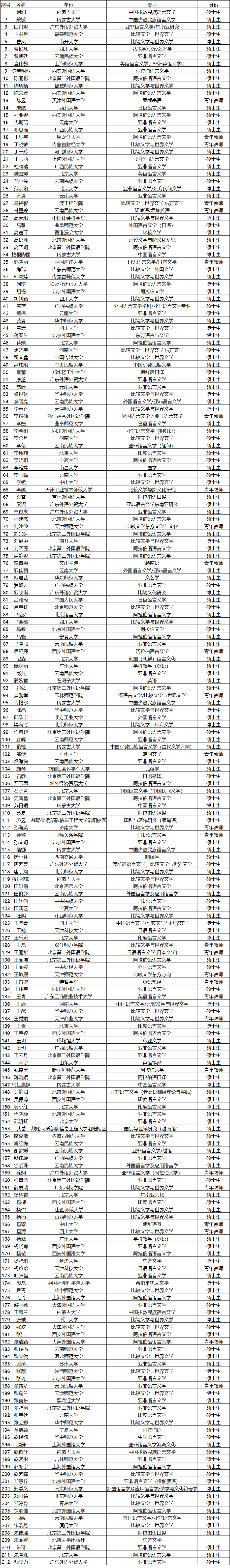 2020年“东方文学:新丝路与新思路”全国研究生暑期学校录取名单