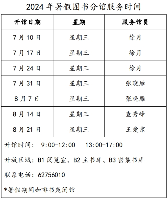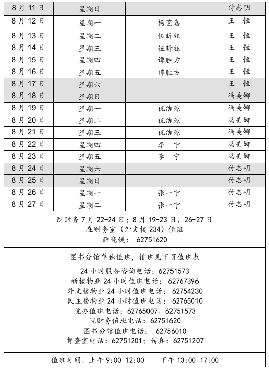 2024年暑假3003新葡平台登录入口带值班表