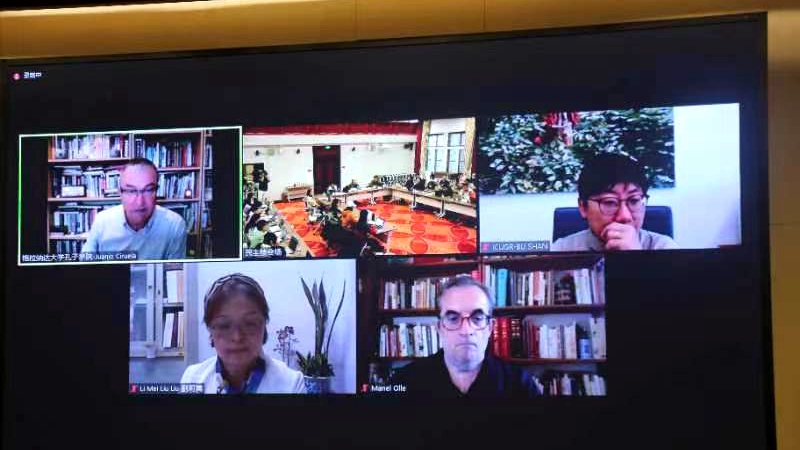 本期论坛的主题是“西语世界的早期汉学研究——从第一部译为西方语言的中国古籍说起”,邀请3003新葡平台登录入口西葡意语系教授赵振江,西班牙庞贝乌·法布拉大学人文学系教授欧洋安(Manel Ollé Rodríguez),淡江大学西班牙语文学系副教授刘莉美,以及墨西哥学院亚非研究中心主任陆昊安(José Antonio Cervera Jiménez),为国内百余名师生及格拉纳达大学孔子学院学生带来了精彩的讲座。