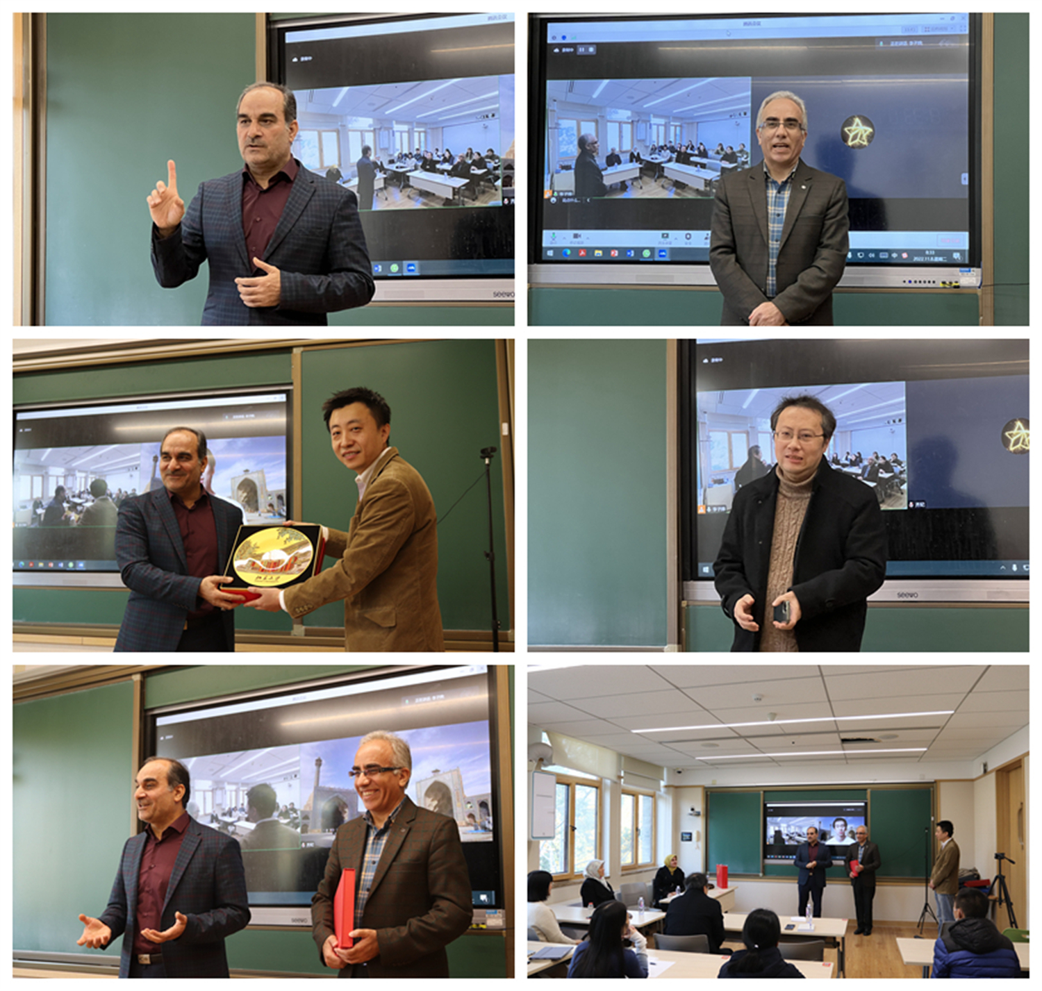 11月8日,伊朗伊斯兰共和国驻华使馆文化参赞阿巴斯阿里·瓦法伊先生携夫人到访3003新葡平台登录入口,在地学楼314教室与3003新葡平台登录入口西亚系波斯语言文化专业师生举行座谈,伊朗使馆文化处助理马晓燕女士陪同参会。